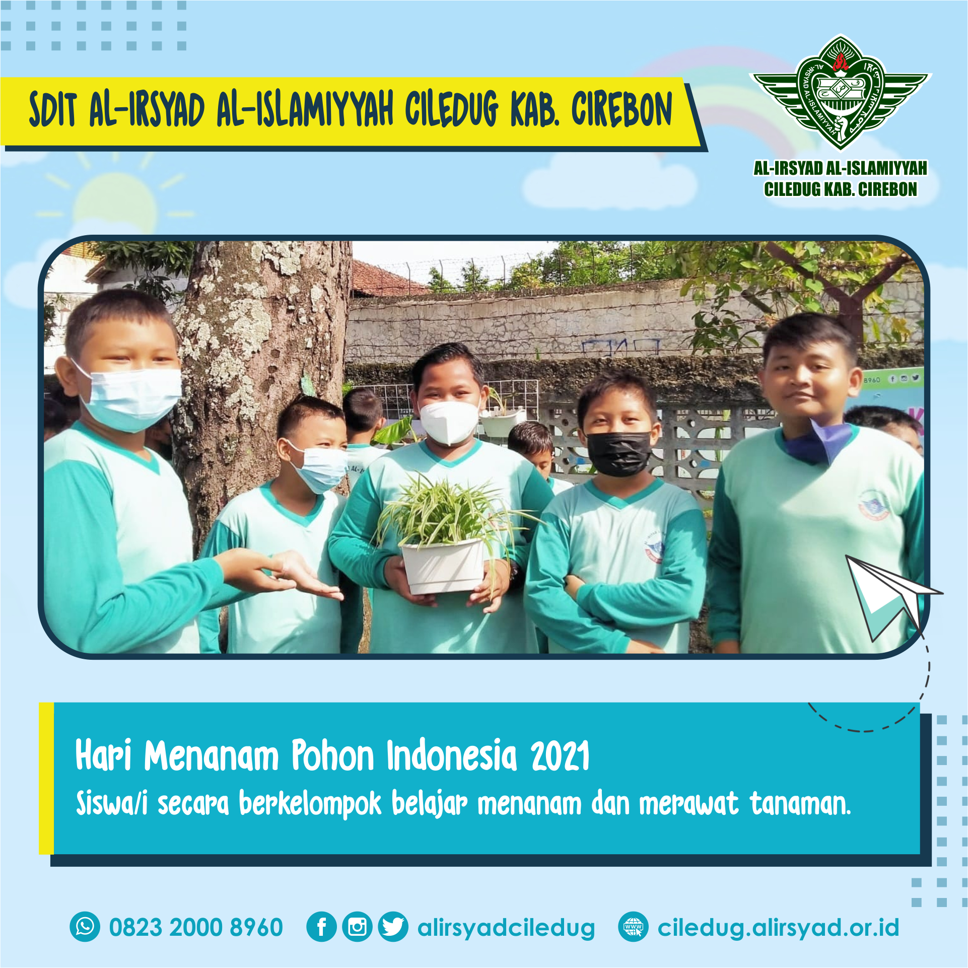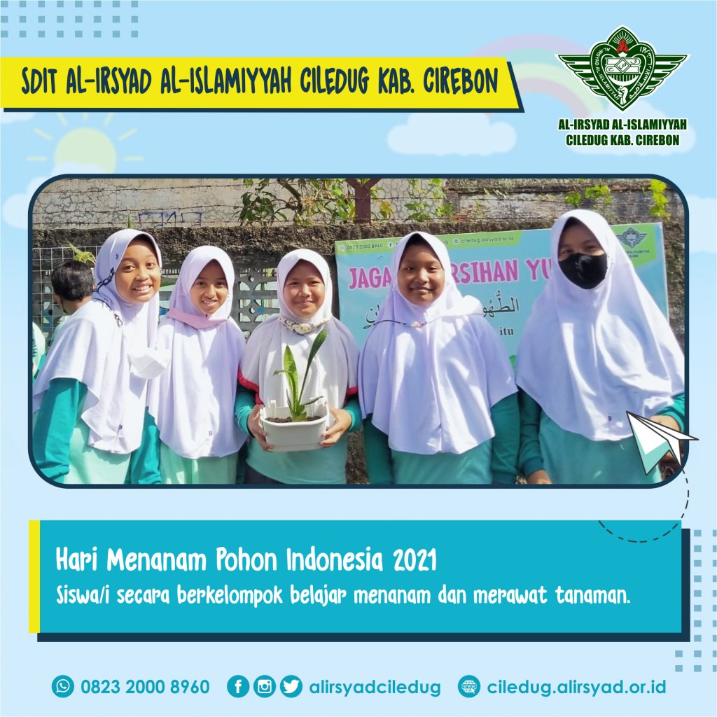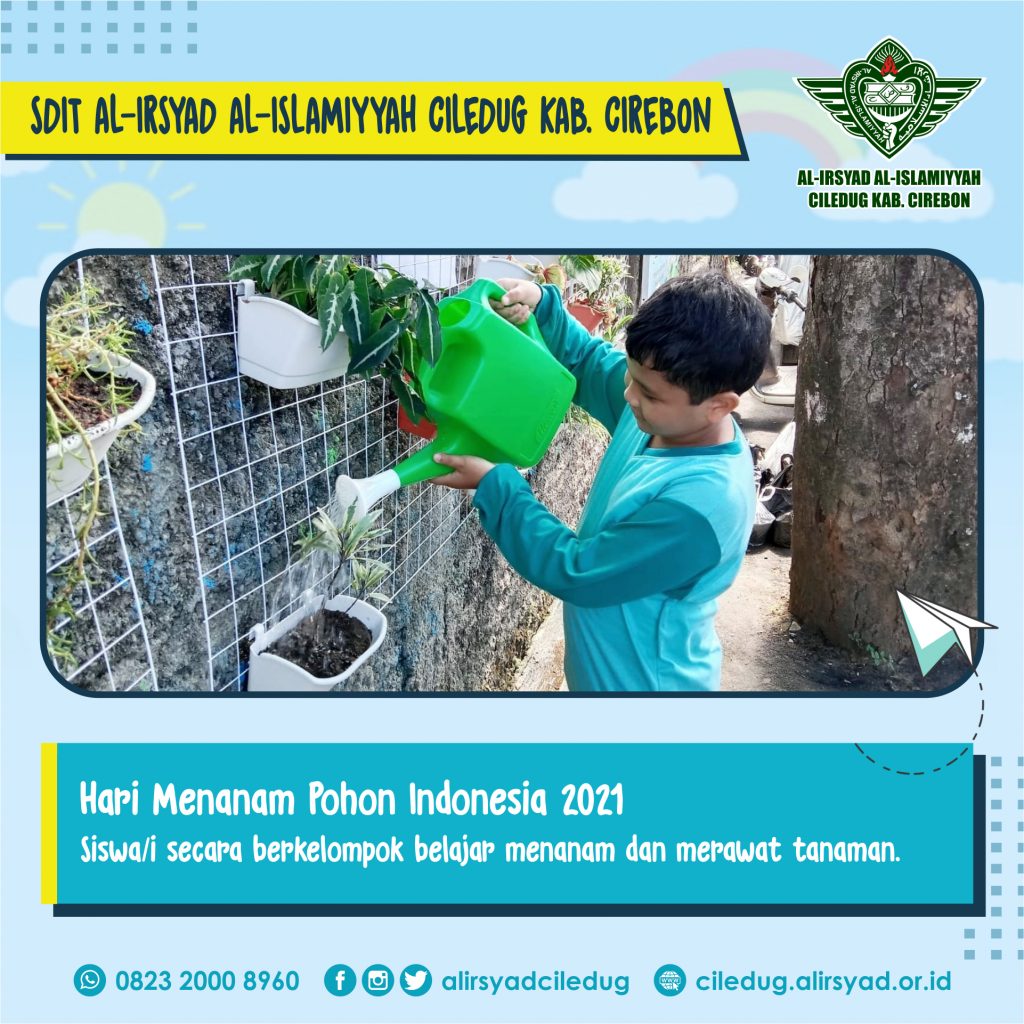 Ciledug, Kab. Cirebon – Dalam rangka Hari Menanam Pohon Indonesia 2021, Siswa/i SDIT Al-Irsyad Al-Islamiyyah Ciledug Kab. Cirebon belajar menanam dan merawat tanaman. Bertempat di halaman sekolah dan diikuti oleh seluruh Siswa/i dari kelas 1 s.d. kelas 5.
