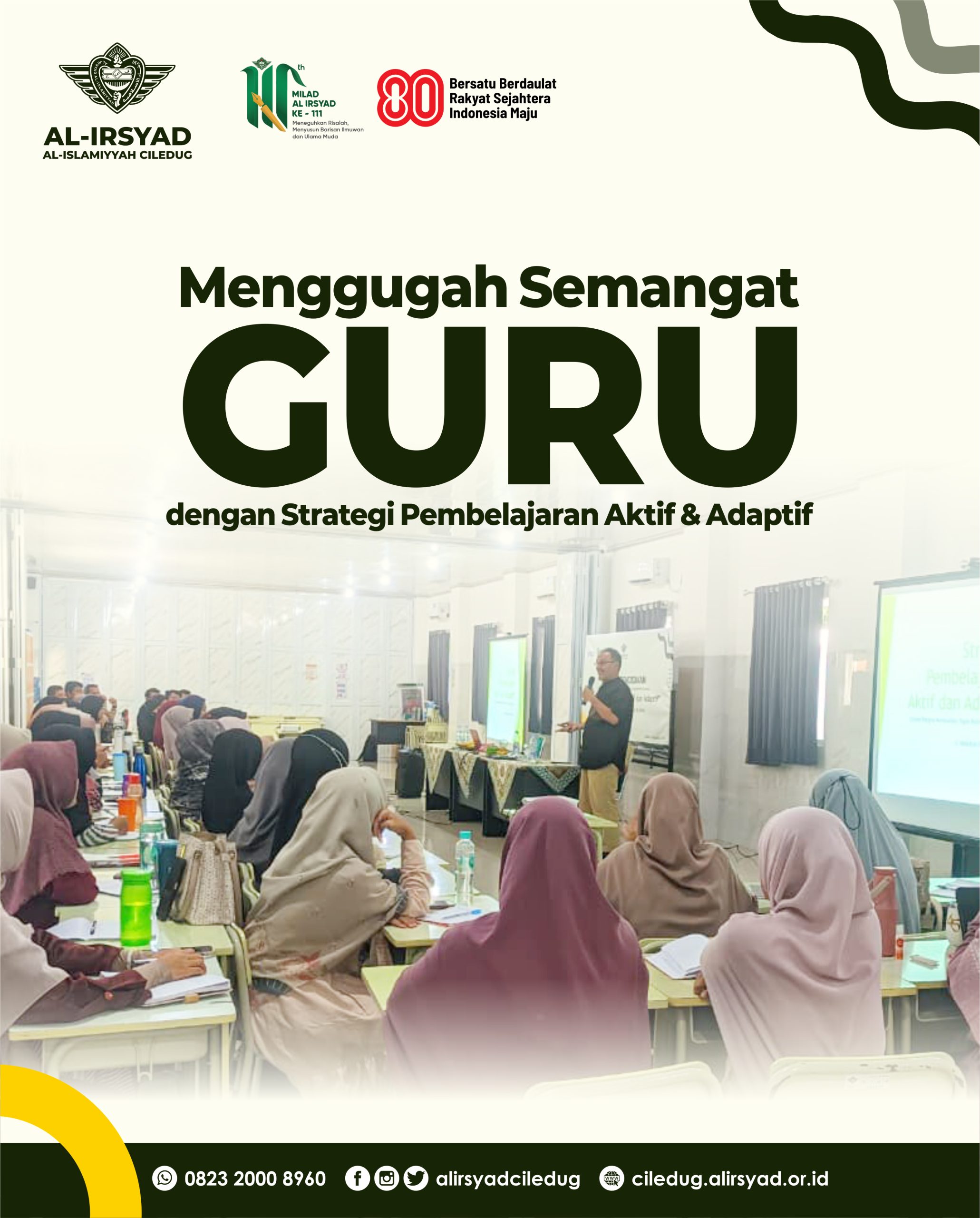 Ciledug, 16 Agustus 2025 – LPP Al Irsyad Al Islamiyyah Ciledug menggelar Seminar Pendidikan bertajuk “Strategi Pembelajaran Aktif dan Adaptif: Dalam Rangka Menunaikan Tugas Mulia Seorang Guru”, pada Sabtu (16/7), bertempat di Gedung II SDIT Al Irsyad Al Islamiyyah Ciledug, Kabupaten Cirebon.